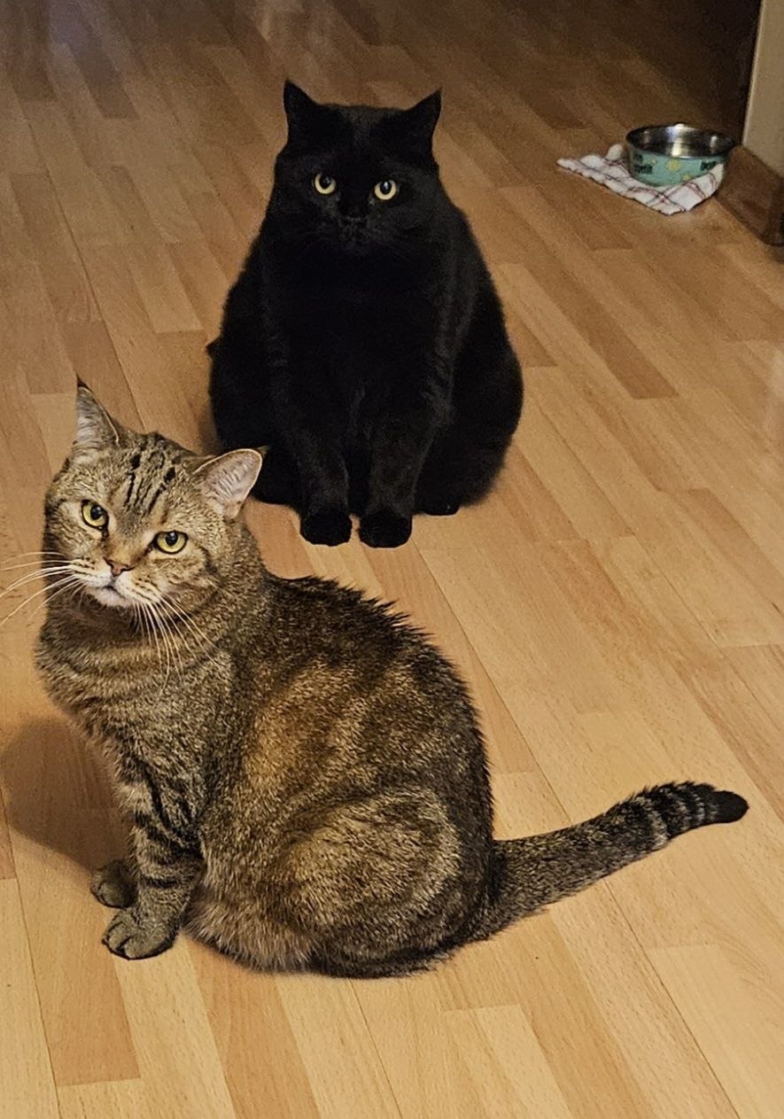 These are my cats. The brown, serious cat is Nora and the black, gluttonous cat is Maxvill.